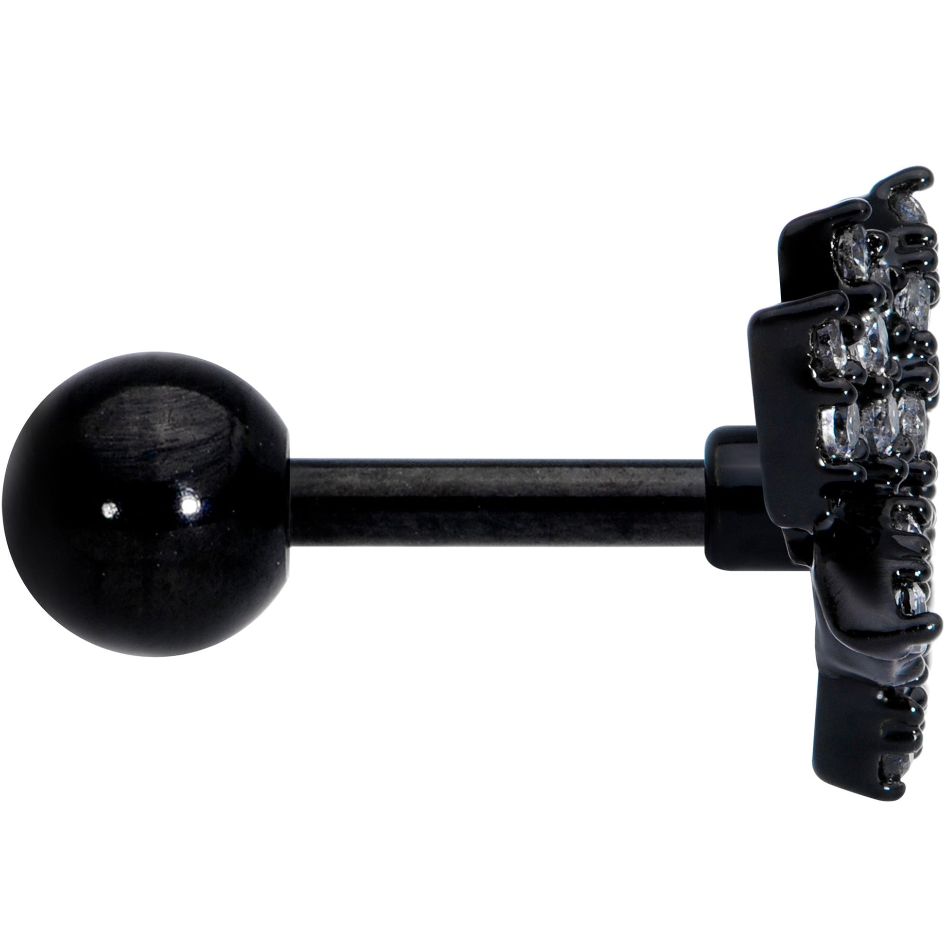 16 Gauge 1/4 Clear CZ Gem Black Lotus Flower Cartilage Tragus