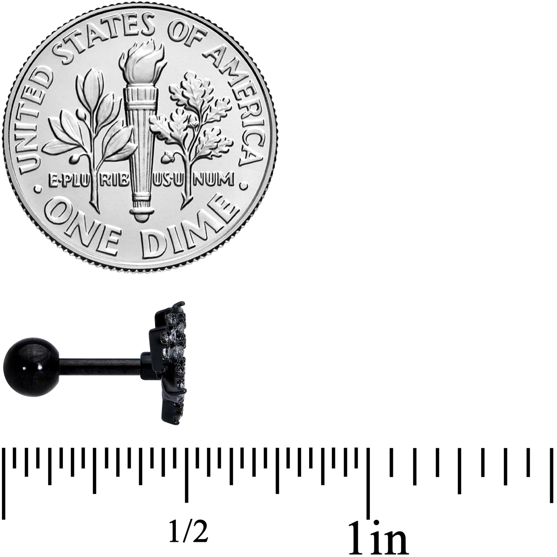 Inner peace is important but so is outer peace - like the kind you get from this 16 gauge tragus stud! It's made with a 6mm black PVD over 316L surgical grade stainless steel straight barbell with a 4mm ball end and features a lotus flower charm paved with clear cubic zirconia gems. It's a great way to show off your spiritual side, as well as the peace you'll get from knowing how sophisticated and stylish your cartilage piercing looks! You can show it off in multiple piercings including tragus, helix, and some conch piercings. This lotus is sure to soothe your mind - when you look this good, you're sure to feel good too!Specifications