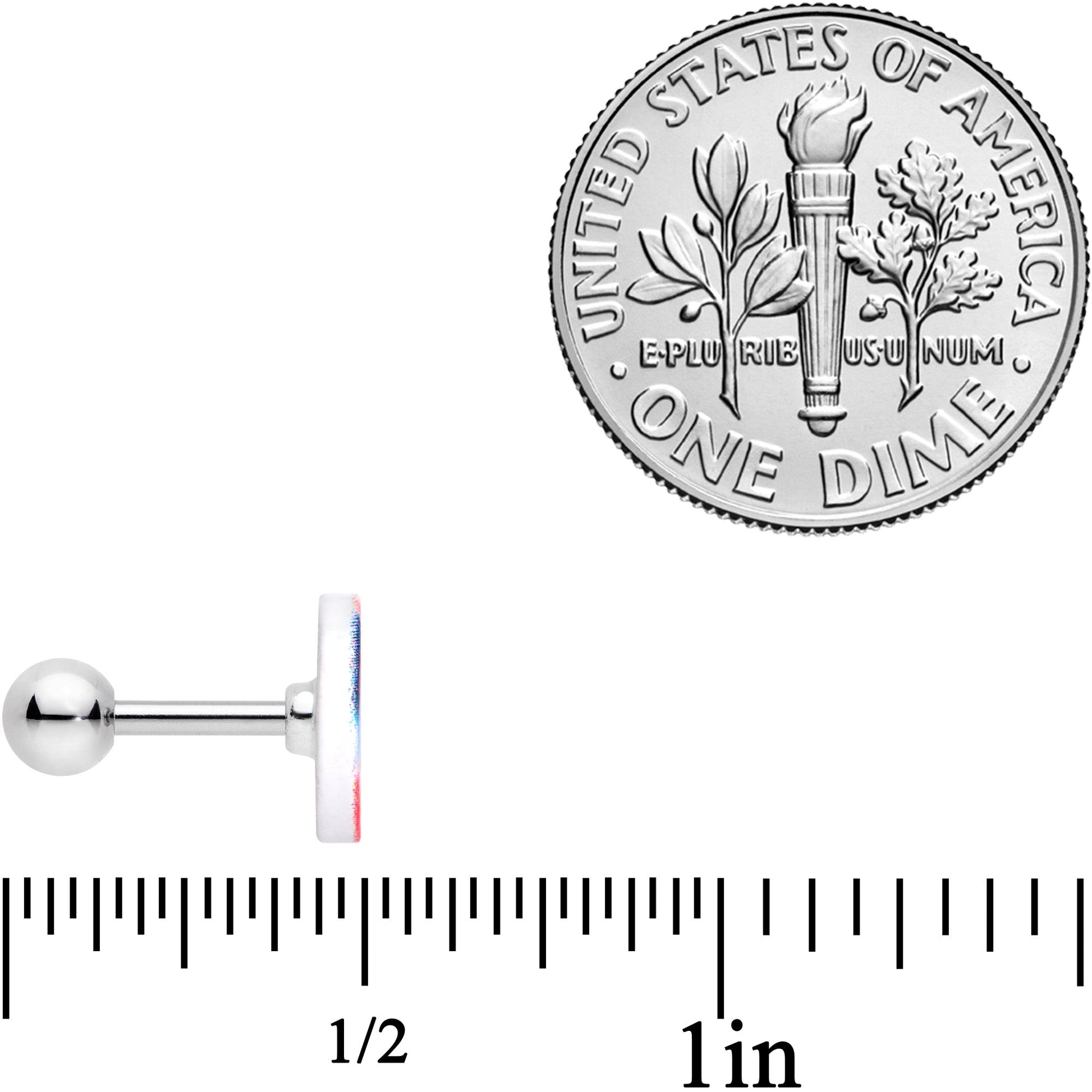 Whoah dude...that swirl in your piercing is totally trippy! This 16 gauge cartilage stud is made with a 6mm durable 316L surgical grade stainless steel straight barbell with a 4mm ball end. It features a red and blue charm that's reminiscent of a tie-dyed effect. If that's not enough to make your hippie heart beat faster, this tragus stud works beautifully in multiple piercings including the cartilage piercings like the tragus, helix, and some conch piercings. Peace, love, and piercings with this head-swirling tie-dye tragus piercing!Specifications