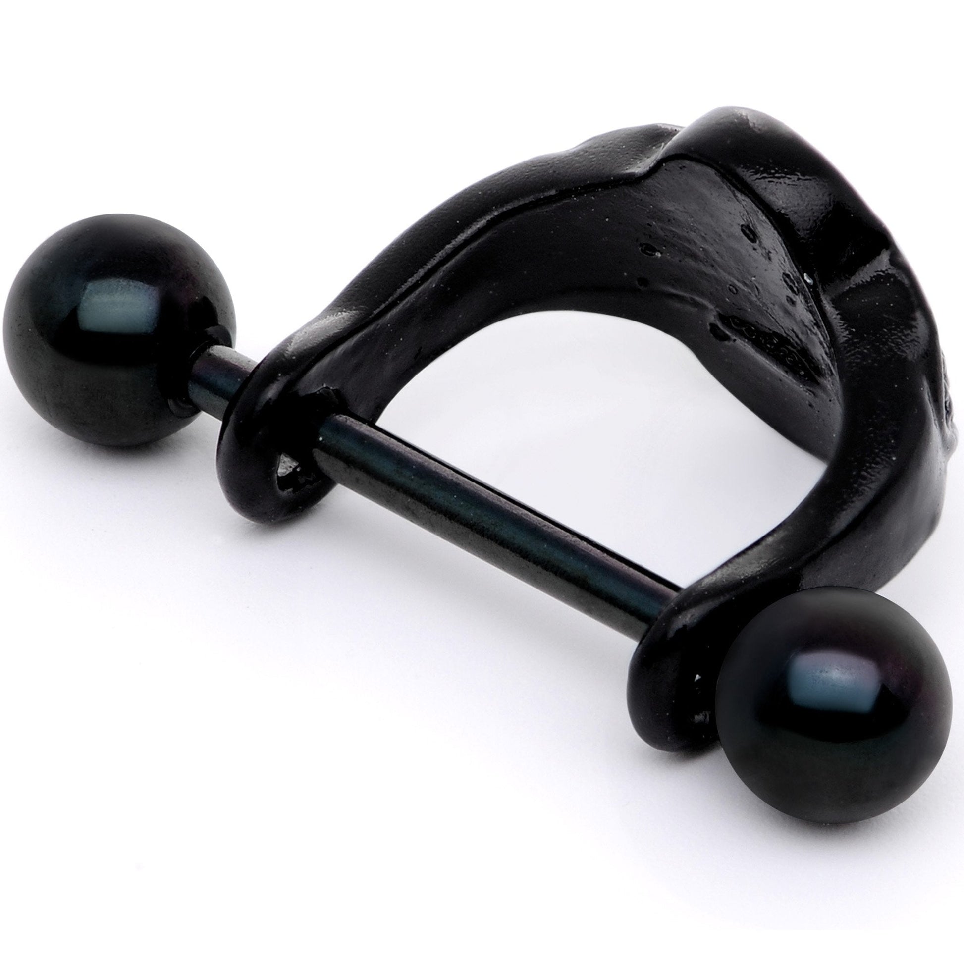 Generally "winding up in cuffs" is a bad thing....unless it's this 16 gauge cartilage earring! Made with a 12mm black PVD over 316L surgical grade stainless steel straight barbell, it has 3mm ball ends. The cuff features a flower embellishment crowned with an oval faux turquoise for a bright pop of eye-catching color. This beautiful combo will have you happily saying "cuff me!"
