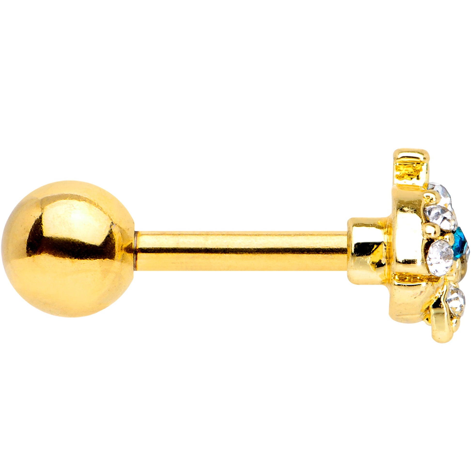 16 Gauge 1/4 Clear Aqua Gem Gold Tone Whale Cartilage Tragus Earring