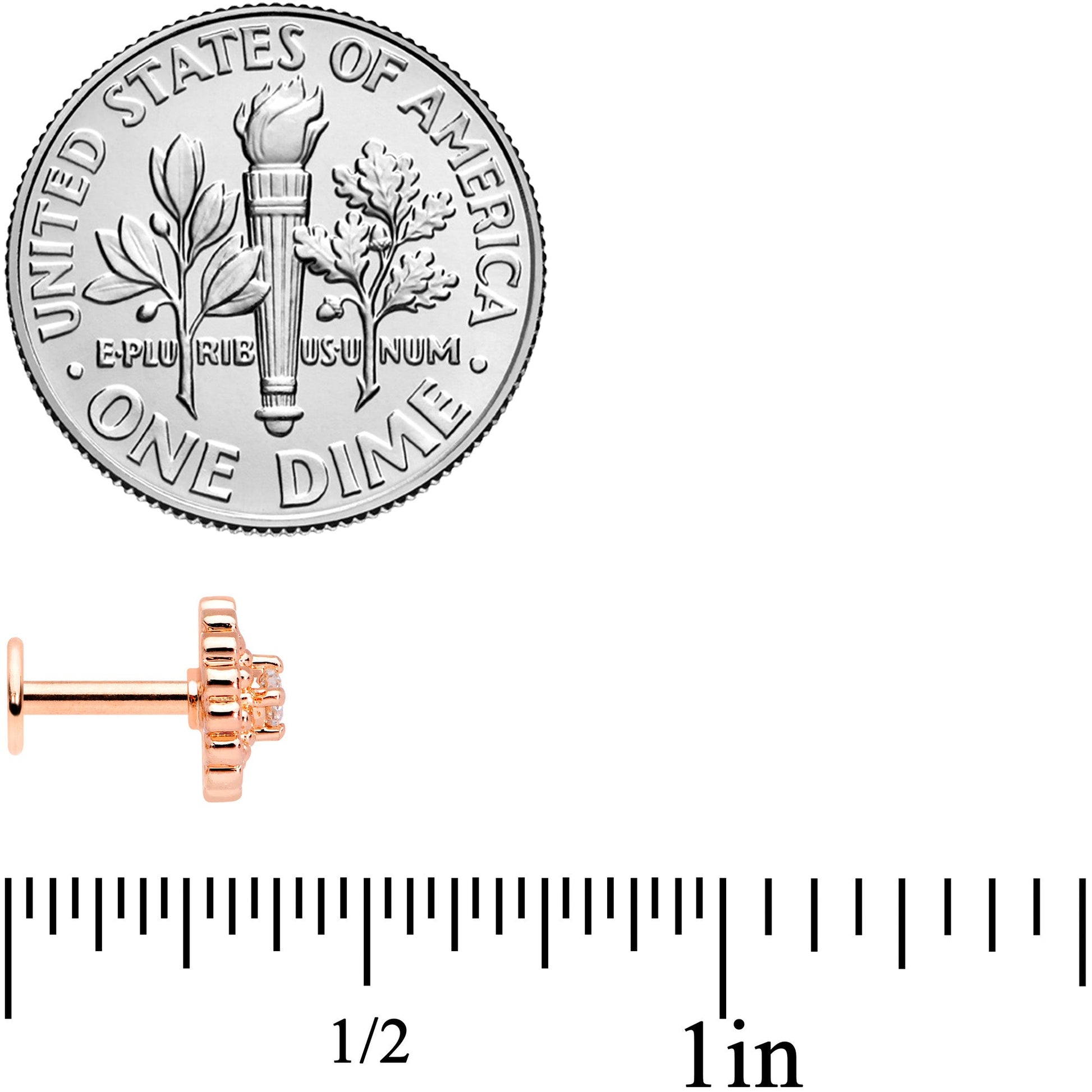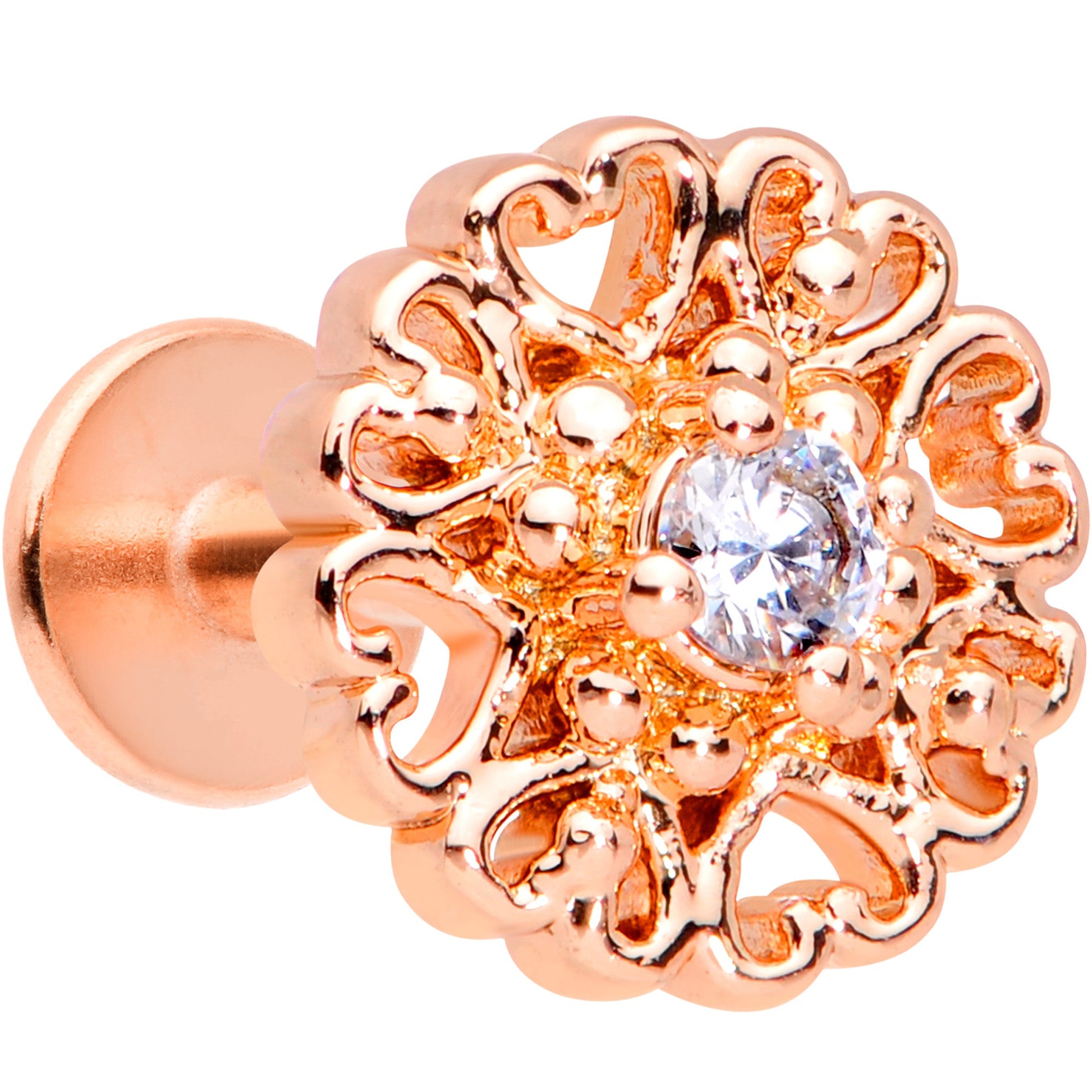 16 Gauge 1/4 Clear CZ Rose Gold Tone Hearts Labret Monroe Tragus