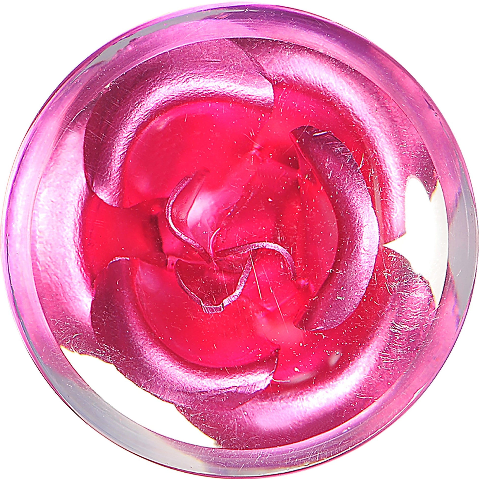 18mm Clear Acrylic Floating Pink Metallic Rose Flower Plug