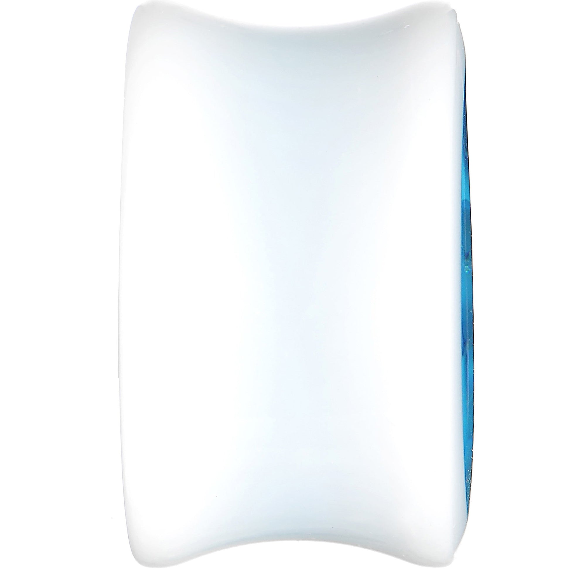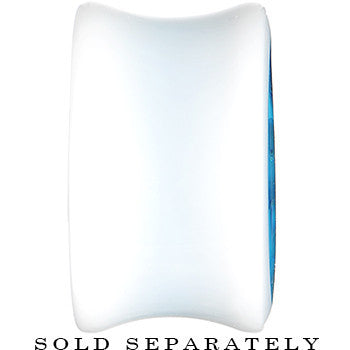 Sold Individually, purchase 2 for a pair.18mm white acrylic plug featuring a floating aqua blue metallic rose. Let your beauty bloom with this elegant floral ear plug.