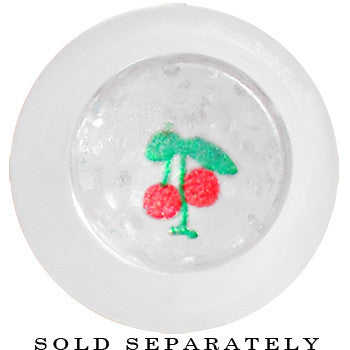 Sold individually, Please purchase a quantity of 2 for a pair. 6mm glitter straight taper. Clear acrylic taper ear plug with cherry pattern. Cherry taper Body Jewelry./font>