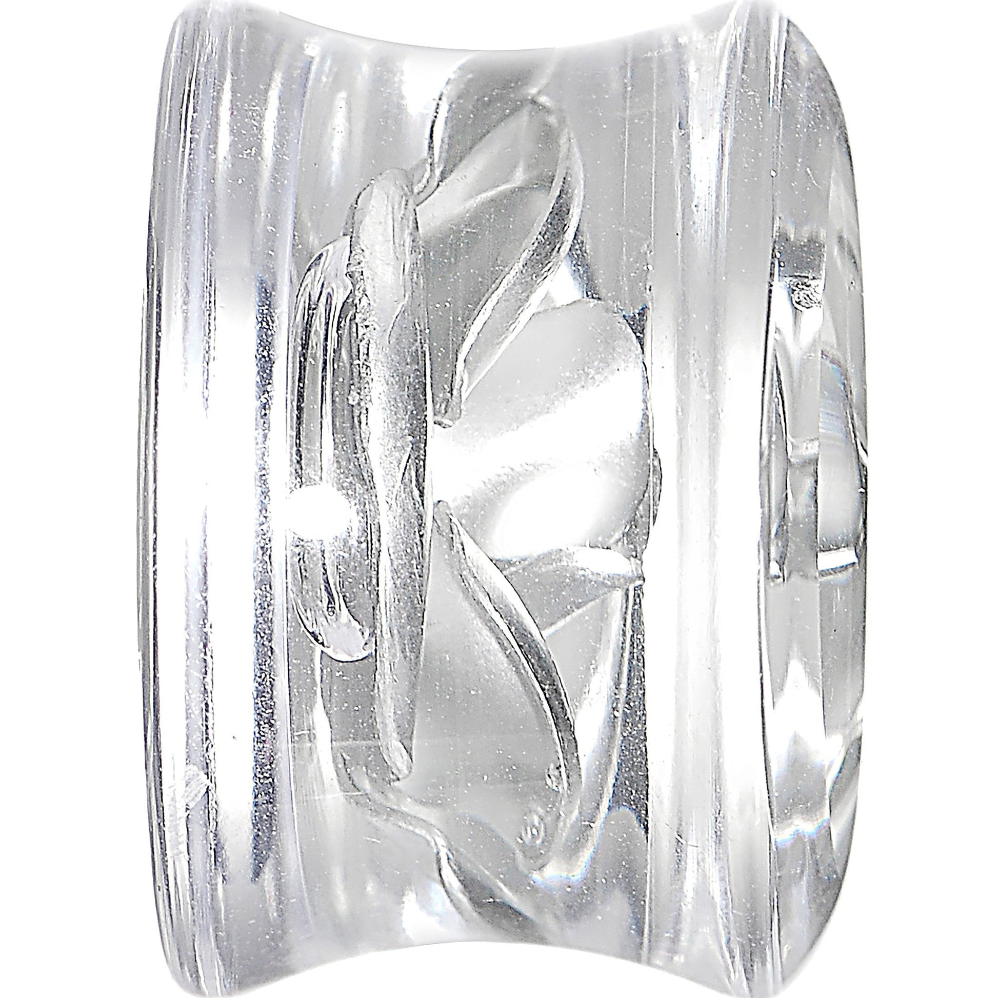 Sold Individually, purchase 2 for a pair. 9/16" clear acrylic plug featuring a floating silver metallic rose. Let your beauty bloom with this elegant floral ear plug.