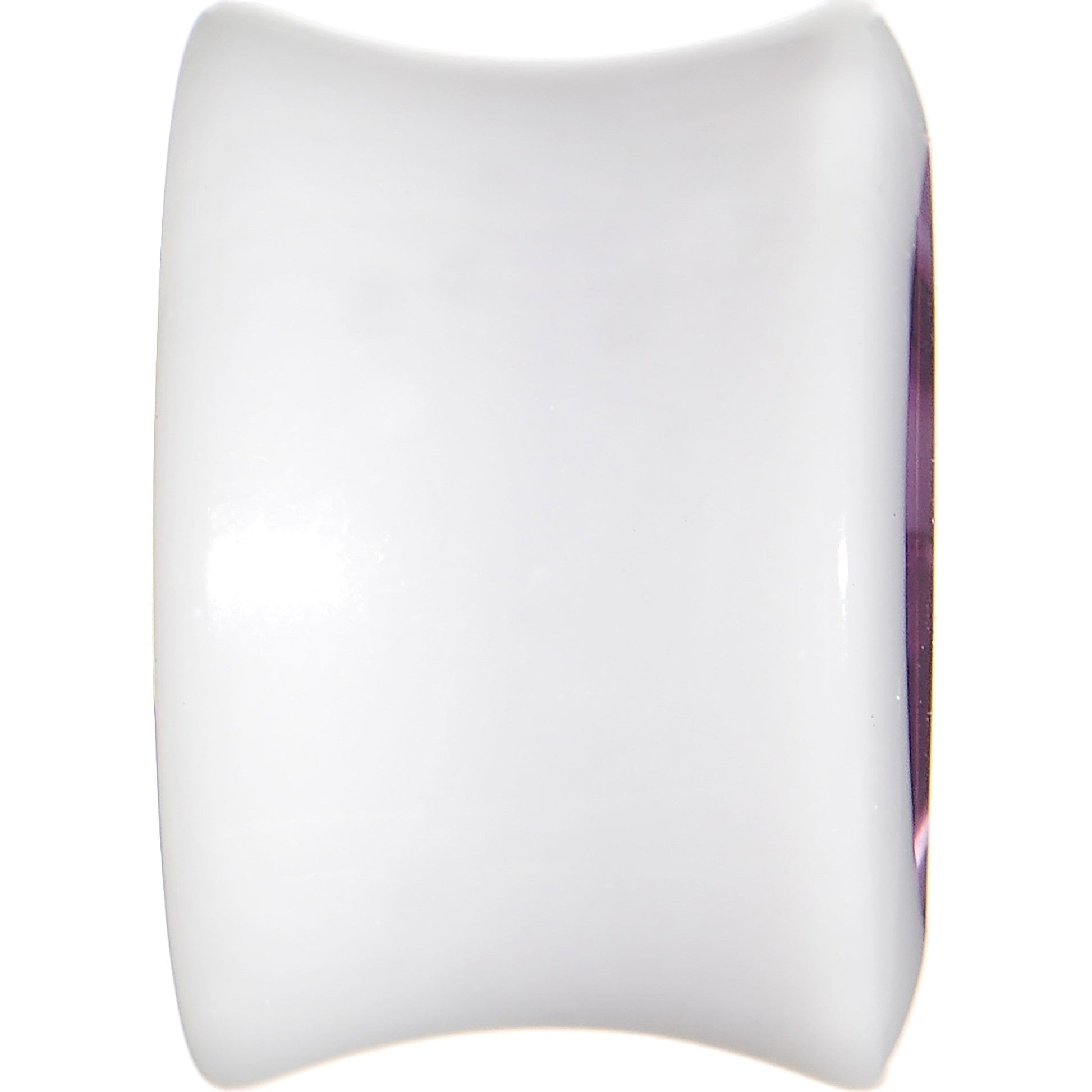 Sold Individually, purchase 2 for a pair. 9/16" white acrylic plug featuring a floating purple metallic rose. Let your beauty bloom with this elegant floral ear plug.
