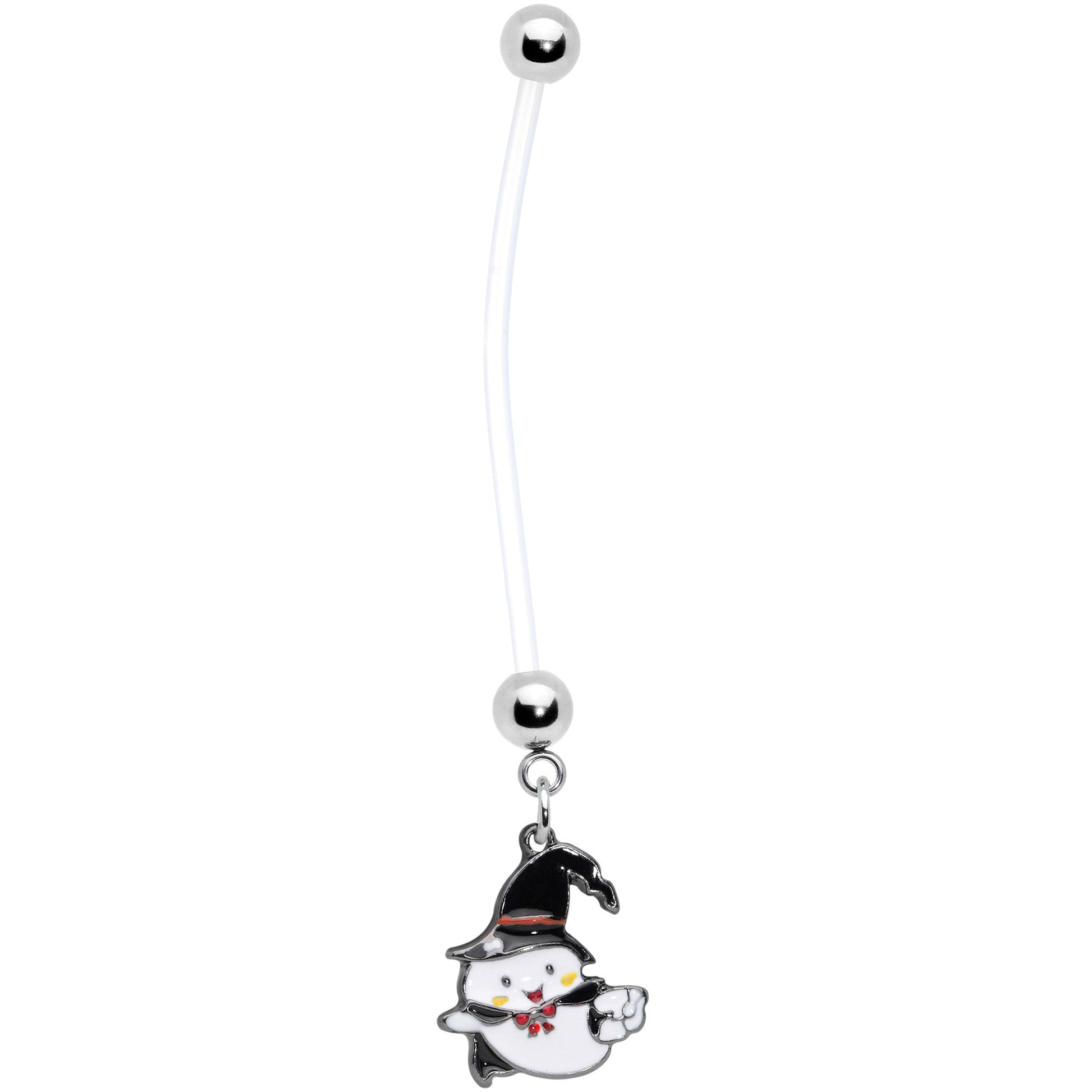 Clear Bioplast Witchy Ghost Halloween Dangle Pregnancy Belly Ring