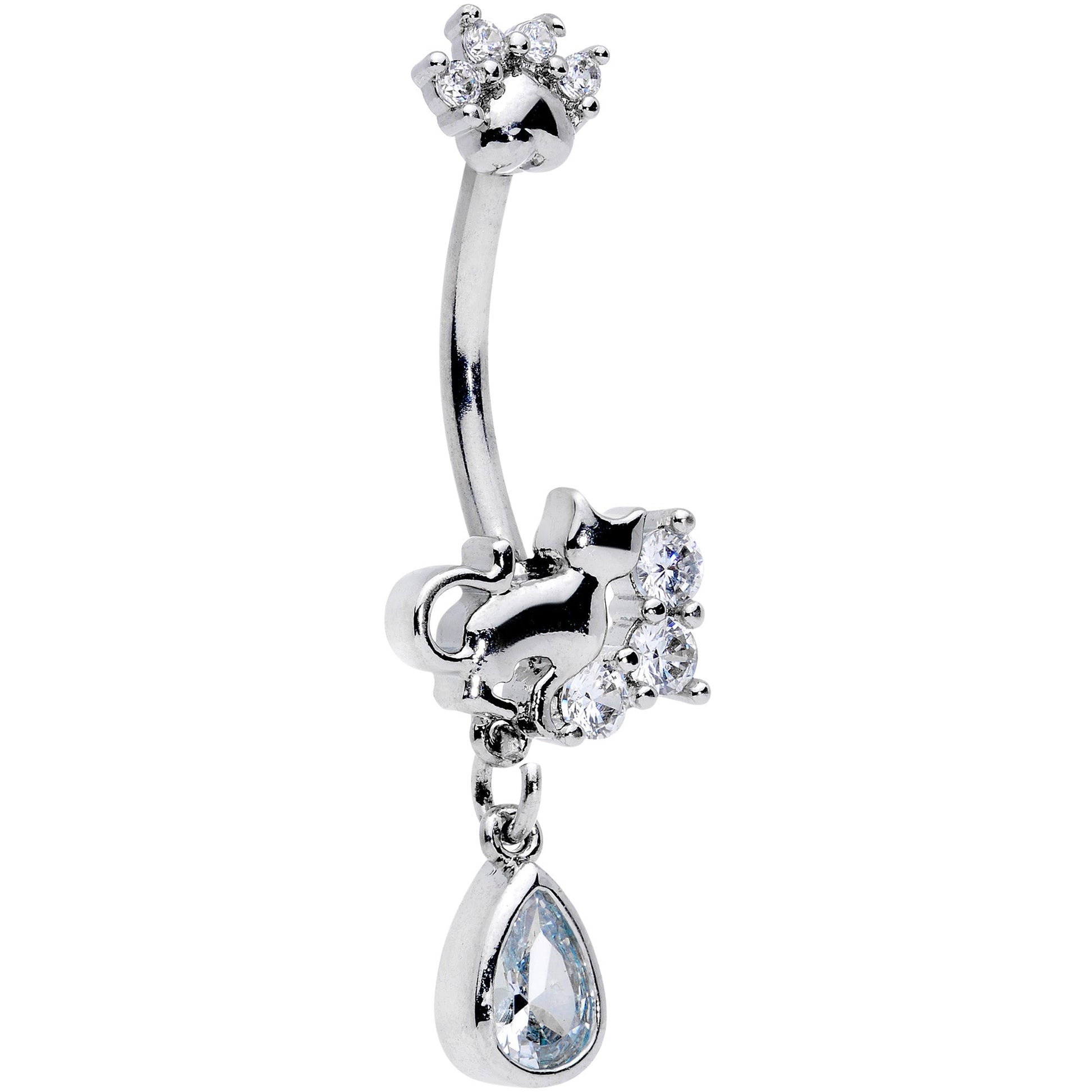 Clear CZ Gem Paw Print Cat Dangle Belly Ring
