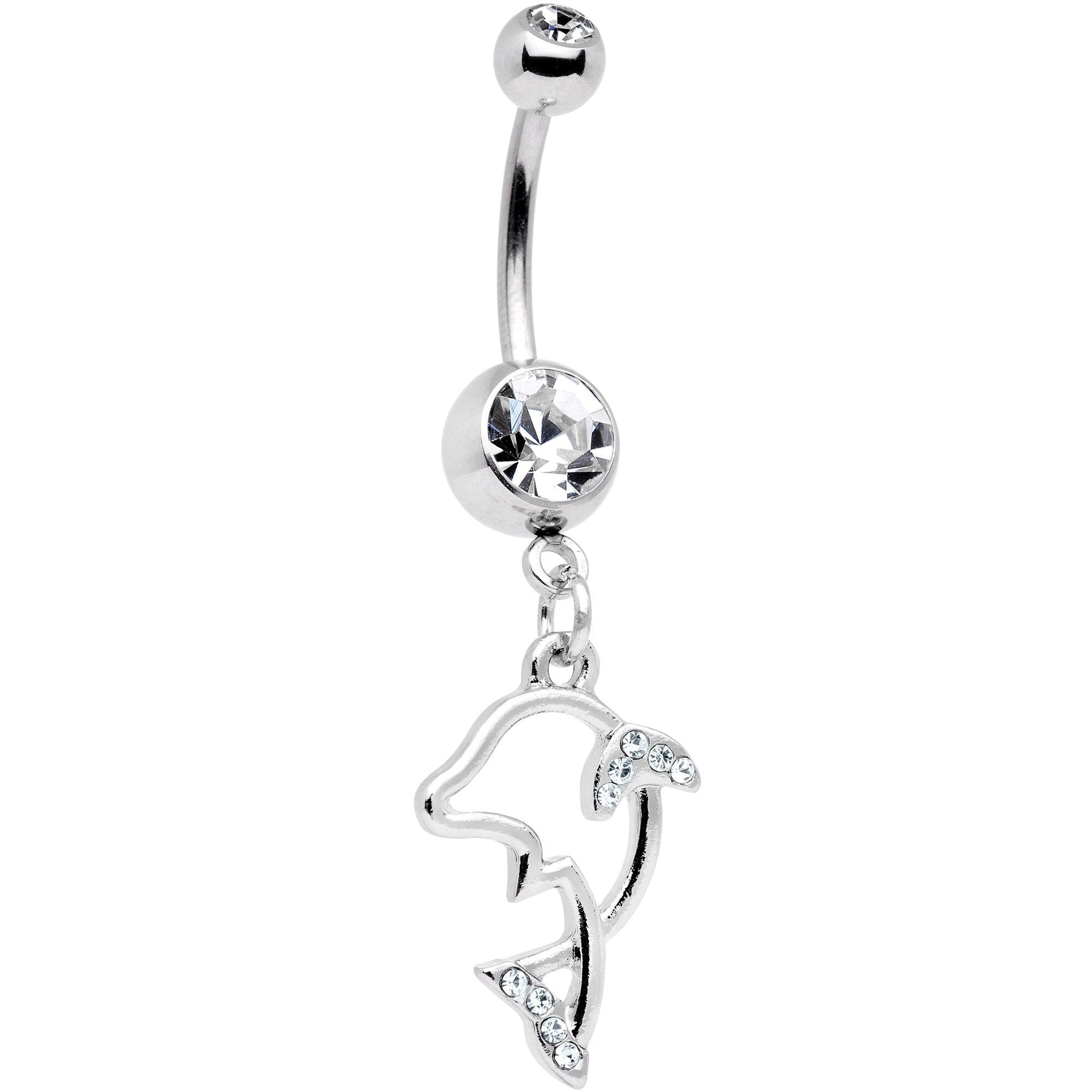 Clear Gem Hollow Dolphin Dangle Belly Ring