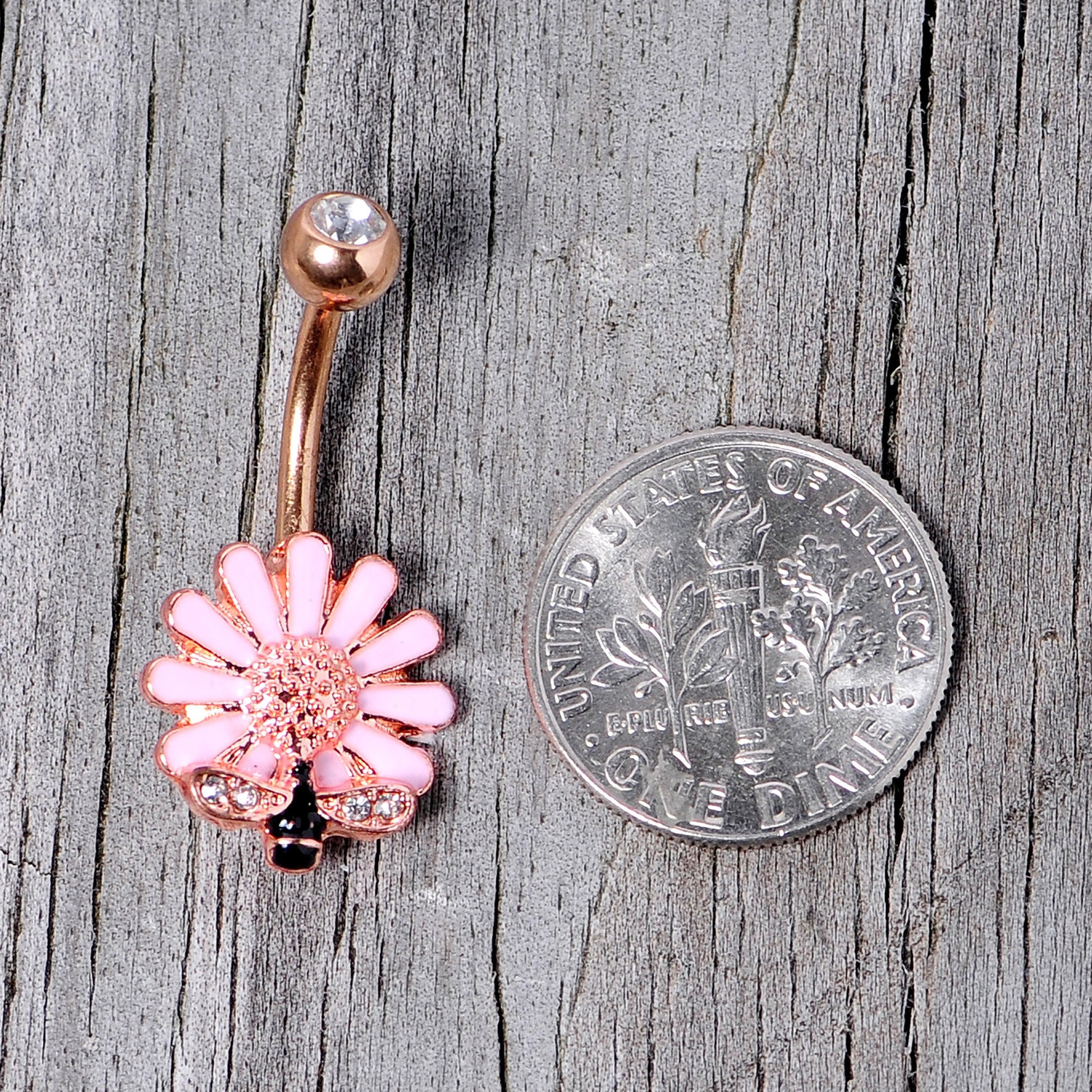 Clear Gem Rose Gold Tone Pink Daisy Bee Belly Ring