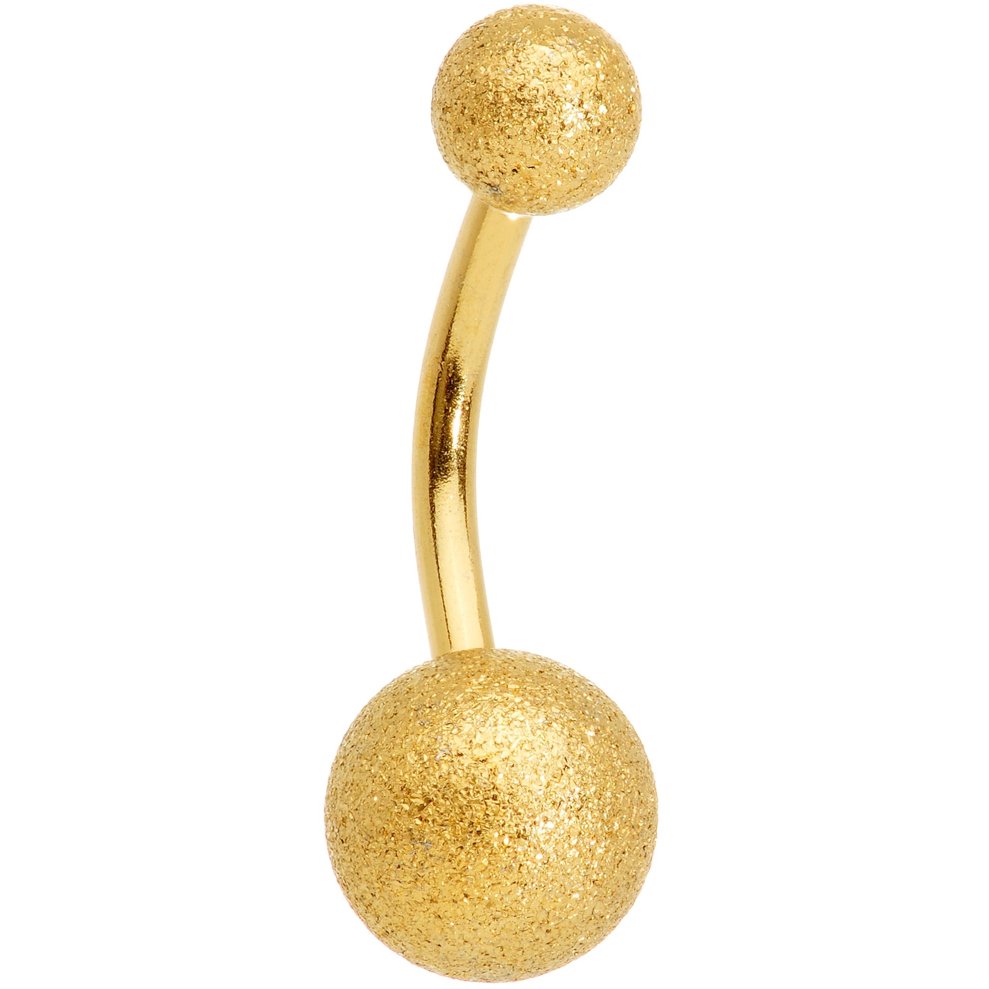 This set of 14 gauge navel rings has everything from simply sandblasted to fancy flowers! Each one is made with a 3/8" gold tone plated over 316L surgical grade stainless steel curved barbell. You get one with a 5mm top ball end and 8mm bottom ball end, both with a sandblasted finish. The second one features a 5mm top ball end that's set with a clear gem and a bottom white faux opal. The third one features a 5mm top ball end that's set with a clear gem. The bottom end is a large flower charm, its petals paved with clear gems and a small white faux opal at the center, making for an extremely rococo look. Whether you like your look understated or over-the-top, this set of belly button rings has you covered! Sold as a set of three.