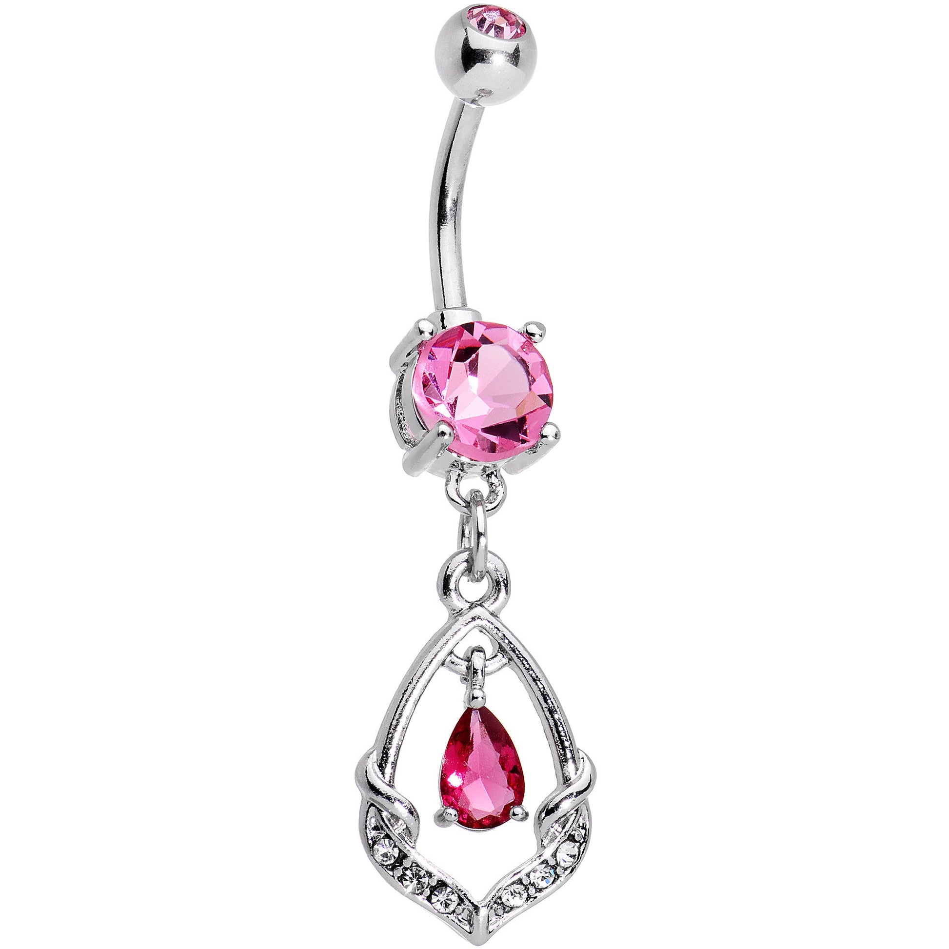 Pink CZ Gem Precious Treasure Dangle Belly Ring