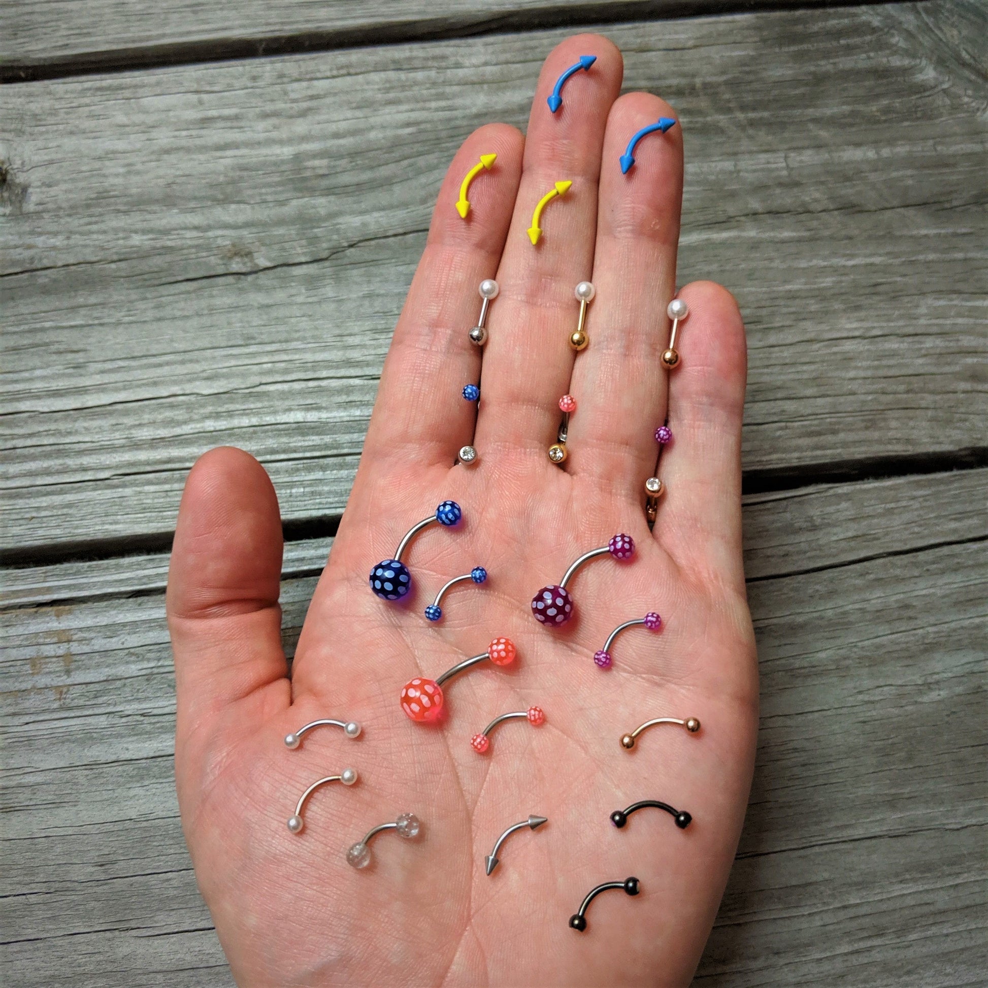 14 Gauge (1.6mm), 7/16" (11mm), 316L Surgical Grade Stainless Steel Curved Barbell, UV Reactive 5mm-8mm Acrylic Ball Ends